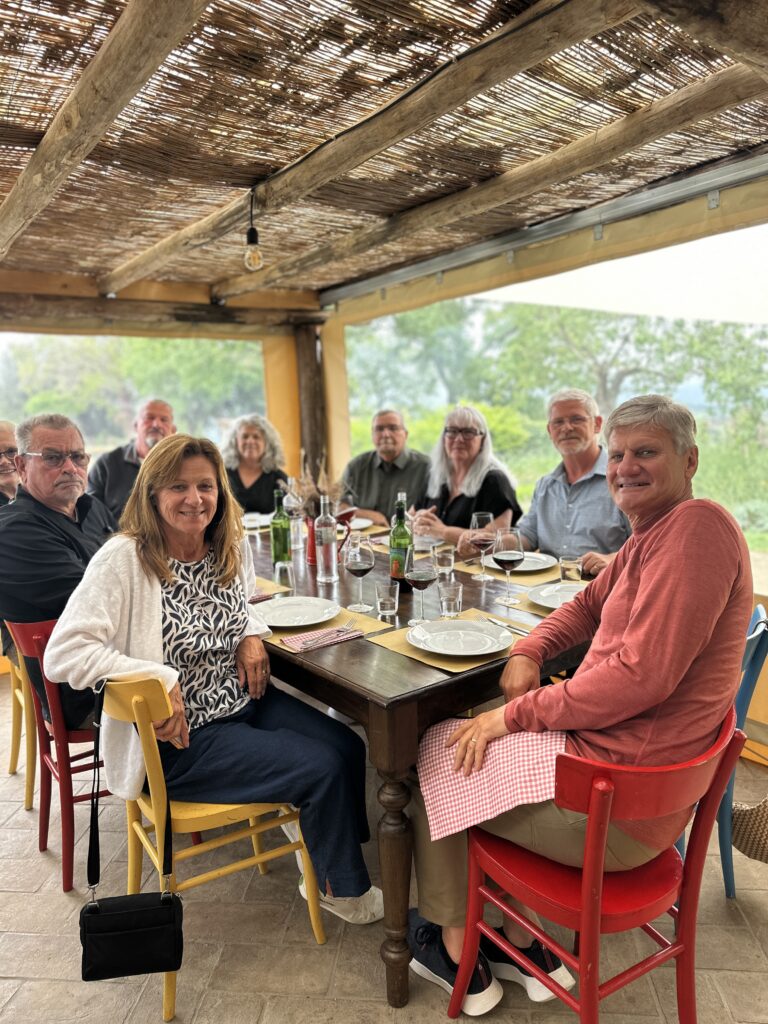 In 2023, Scot and I had one of those unforgettable meals at a quiet little restaurant tucked into the hills of this beautiful Tuscan town. The food was simple, soulful, and cooked with the kind of love you can taste. When I returned this year with my group of eight dear friends, I knew exactly where I wanted to take them — back to that kitchen. We arranged a private cooking class right there, and it felt like bringing them into a secret I’d been holding in my heart.